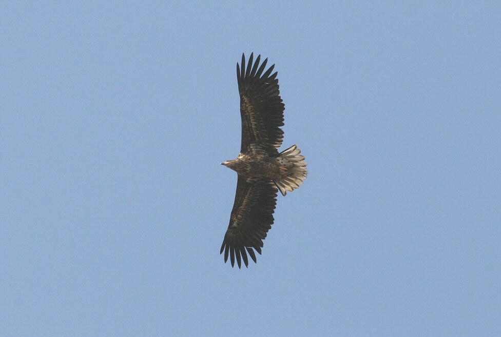 Beskrivelse: Her er en 2-3 K Havørn fra Holmegaards Mose fotograferet i dag den 8/4 05 kl ca. 11. Den legede iøvrigt sammen med to unge artsfæller over Broksø Fladvandet i min 15 minutter. Taget med Canon EOS 20 D og 100 - 400 Canon zoom.
