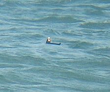 Beskrivelse: Fuglen lå på ca. 300 meters afstand i en flok på 24 Sortand hunner.