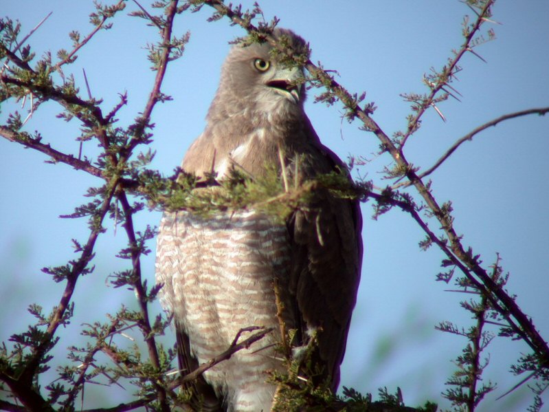 Beskrivelse: Det er desværre ikke lykkedes mig at identificere kræet, trods en omfangsrig litteratur om østafrikanske fugle. Henvendelse til flere forskellige nobiliteter blandt danske feltornitologer, har heller ikke givet pote. Jeg antager, at det er en art sparrowhawk, men nærmere er jeg ikke kommet.