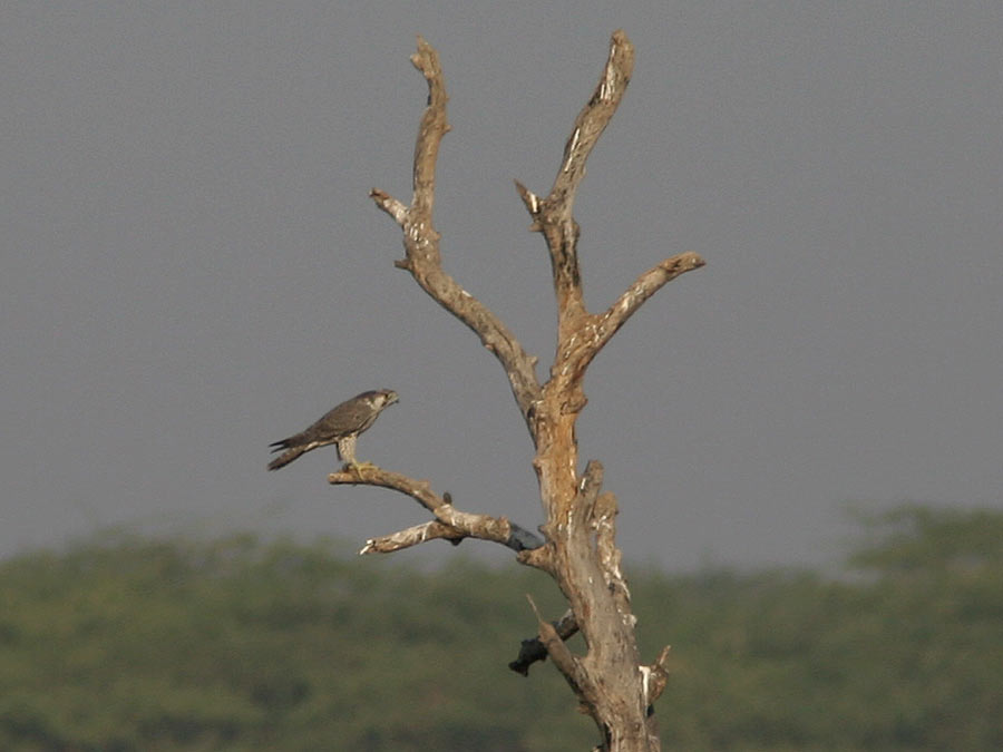 Denne Vandrefalk var musvpgestor. Den grålige isse og overside kombineret med størrelse og lang hale ville nok vække mistanker om f.eks. Jagtfalk, hvis fuglen blev set herhjemme, men bemærk helt hvid kind, lyse, finstribede bukser og slankere proportioner end Jagtfalk.