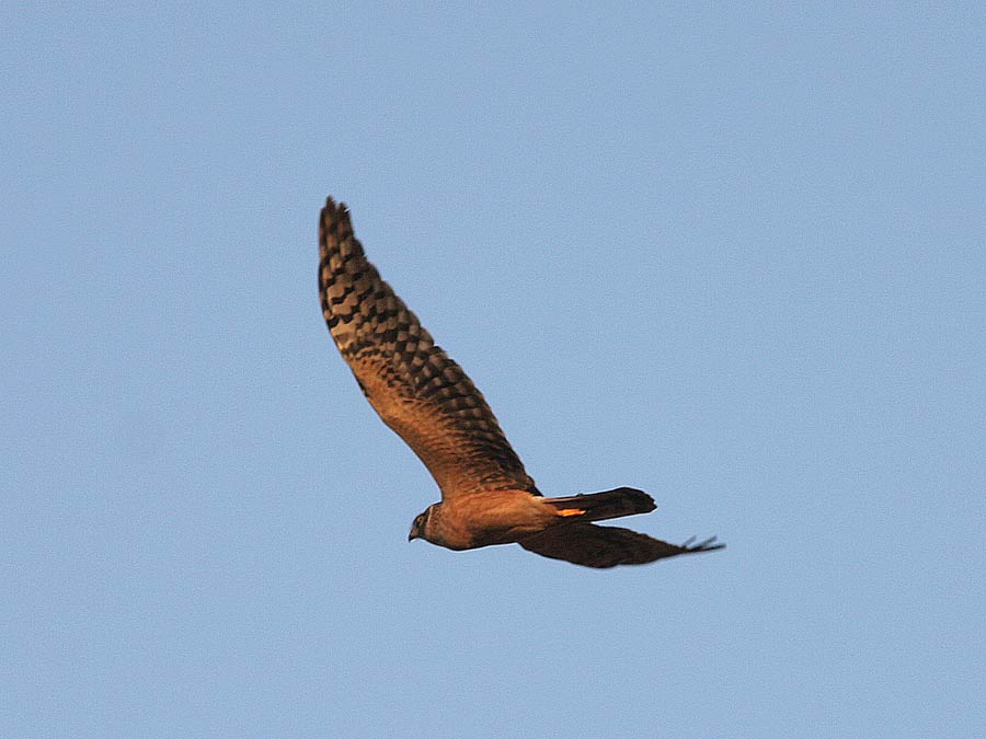 En ikke helt let bestemmelig fugl, der dog havde typisk mekaniske vingeslag, der gav en "stivvinget" flugt ulig Hedehøgens mere spændstige, der kan ligne Rød Glentes med stor bevægelighed i den lange hånd.