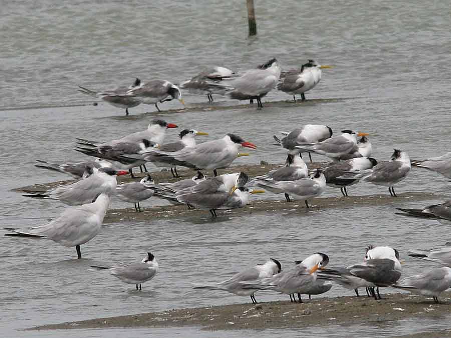 De store, kraftige og voldsomme Rovterner har blodrødt næb. De noget mindre og slankere Bergius Terner har gult næb, af farve som en moden grapefrugt. Bemærk, at oversidens farve varierer en del hos denne art; i samme flok fandt jeg fugle med meget mørkegrå overside, svarende til formen velox, og metydeligt lysere fugle, svarende til thalassina/cristatus. Velox yngler mellem Arabien og Indien, mens de to andre former er vintergæster fra hhv. Afrika og Sydøstasien.