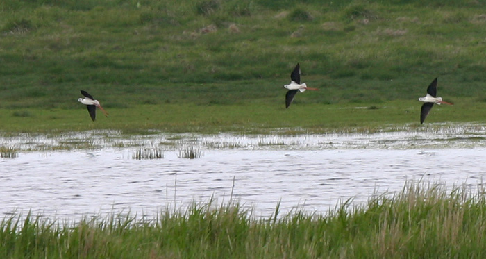 Beskrivelse: "Dokumentationsbillede". Her ses 3 af de 4 stylteløber ved Geddal Enge den 22-5-2005