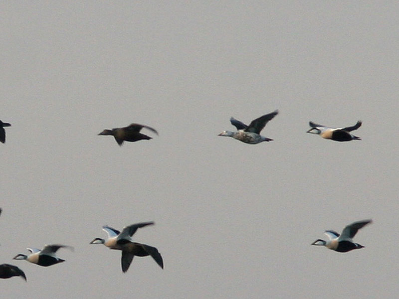 Hun, fejlfarvet han eller???? Godt den blev fotograferet, og jeg har absolut ingen forklaring på den mærkværdige kombination af dragttegninger - fuglens størrelse og form peger på stærkt misfarvet Ederfugl fremfor hybrid.