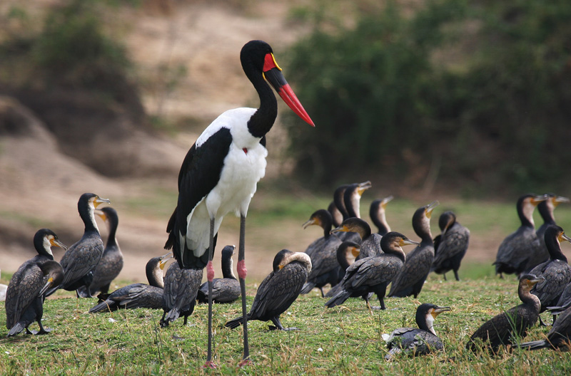 For at give et indtryk af, hvor stor Saddle-billed Stork er, kan jeg nævne, at White-breasted Cormorant af nogle eksperter regnes for en race af vores egen Storskarv, så White-breasted Cormorant er efter danske forhold en temmelig stor fugl. Men den syner ikke af meget i forhold til Saddle-billed Stork, der ganske enkelt er enorm - og tilmed meget farveprægtig.