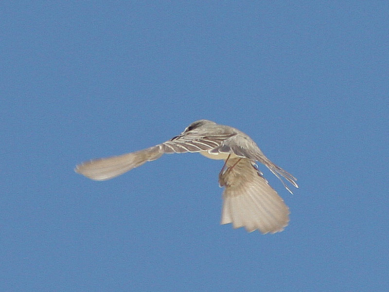 Beskrivelse: Furuden de brede lyse kanter på armsvingfjerene, der ses på dette foto, var fuglen stor og grå sammenlignet med Østlig Bleg Gulbug, og havde en interessant adfærd med at "logre med halen" - ligesom hos Rosenbrystet Sanger, der i øvrigt også har afstikkende mørk hale mod ryggen - og lever i samme omgivelser