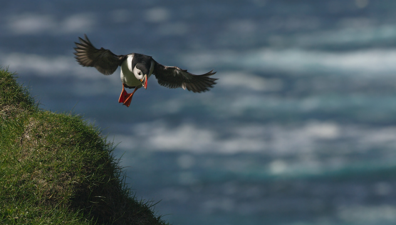 Det er ikke let at få ordentlige flugtfotos af Lunde, idet de er meget hurtige.