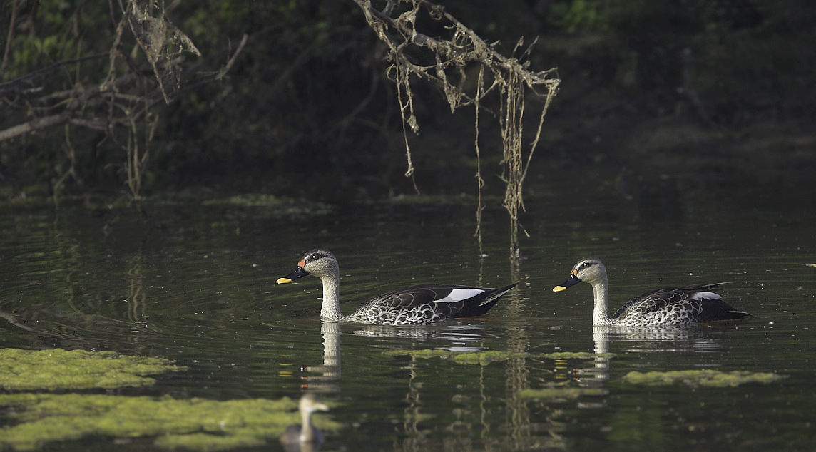 De afbildede ænder må være Indian Spot-billed Duck Anas poecilorhyncha poecilorhyncha.