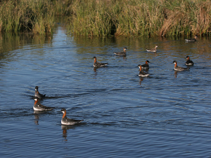 På Grønne Ejland i Disko Bugt kan de små vandhuller visse dage være fyldt med hunner stadig i den flotte yngledragt.