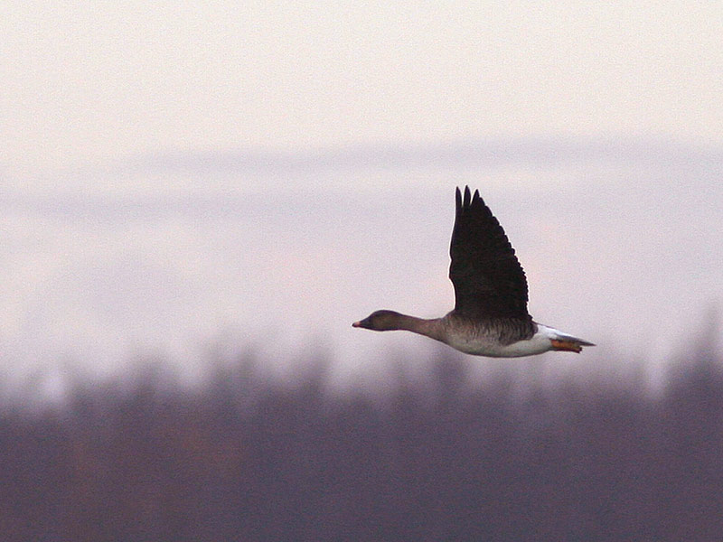 Beskrivelse: Bemærk det kortnæbbet gåse-agtige indtryk med kort, mørkt næb med orange bånd nær næbspidsen, dobbelthale og sur, kurvet mundvig.