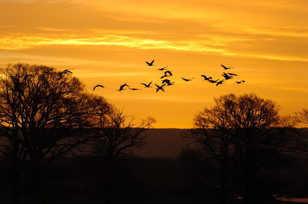 Beskrivelse: Hornborgasjön, solen på vej op omme bag Billingen, tranerne på vej ind. Det er smukt, inspirerende og koldt :-)