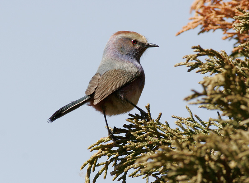 Beskrivelse: En lille fiks bjergsag på blot 10 centimeters længde. Hannen som er fotograferet er farvestrålende med både fremtrædende violette og blå partier. Hunnen noget mere uanseelig - overvejende beige. Denne art har de sidste ti år været lidt af et mysterium. Da jeg begyndte rejserne i Kirgisien blev den aldrig iagttaget i større antal - 2-5 eksemplarer på en rejse var ikke usædvanligt. Dette beror antageligt mere på tilfældigheder, for de sidste par år, har vi iagttaget den i noget større antal. Og idag vil jeg strække mig så langt som at sige, at den lokalt dvs. fra 2000 m.o.h og opefter - er almindelig. M.a.o finder man artens kernebiotoper, dvs lave enebær- og/eller thujabuske - finder man også arten. Og heldigvis for det! Man hører den ofte før man ser den; et halemejselignende kald - om end noget svagere og hæsere afslører ofte fuglen. Den er ikke speciel sky, og sætter man sig ned, kommer fuglene ofte ganske nær. I april 2007 oplevede vi ganske mange eksemplarer og dage med 50 eller flere var mere reglen end undtagelsen. Dette eksemplar er fotograferet en varm og solrig morgen mens den var ifærd med at indsamle redemateriale. Vi havde sat net op for at indsamle DNA, men de små bæster kravlede gennem netmaskerne... gad vide hvor ofte det sker med andre arter; eksempelvis stribede græshoppesangere på Christiansø... Selv fuglekonger på 8 cm bliver hængende - men altså ikke Tit-warblers. Iøvrigt er Violsanger foreslået som dansk navn; det mener jeg nu er lidt misvisende og egentlig ikke særlig kønt. Den er ikke specielt beslægtet med Sylviidae. Den er helt sin egen og med blot en nær slægtning udgør de samtlige tit-warblers på denne klode - dvs i Himalaya-bjergene og i det vestlige Kina.