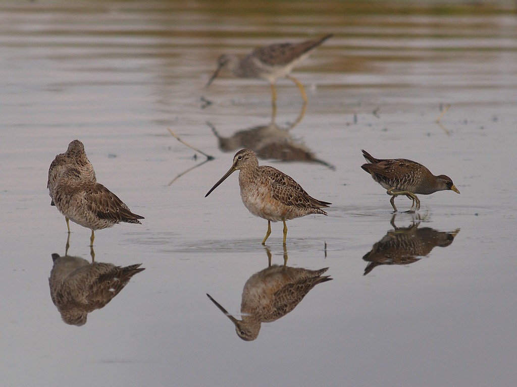 Beskrivelse: Lille gulben i baggrunden og Sora rørvagtel til højre.
