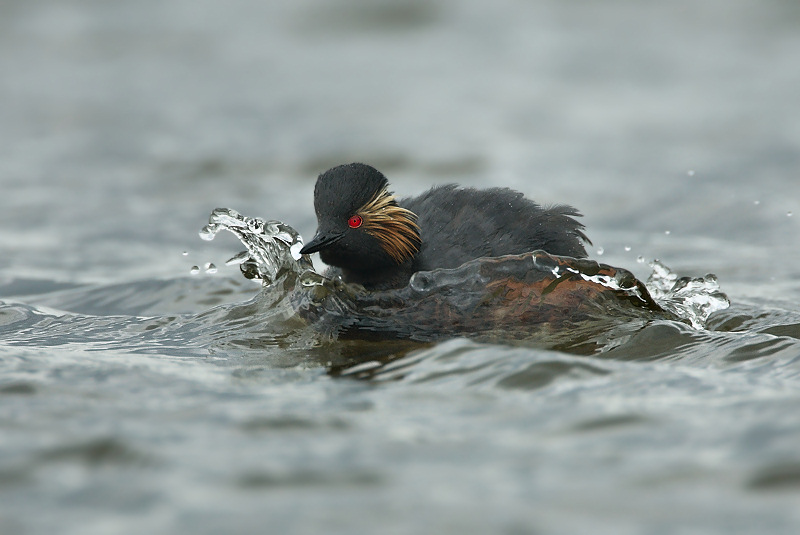 og med nogenlunde lige meget sløret vand over og under fuglen.