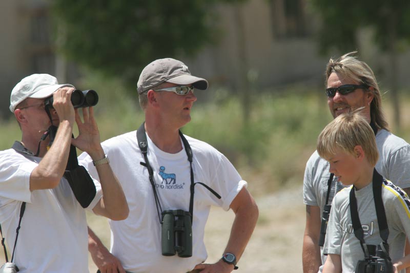 Beskrivelse: Fra venstre Christian Leth, André Riis Ebbesen, Carsten Mose Sørensen og Silas Mose (12 år og skarpøjet!), ved grøn biæderlokalitet, og læggende planer for eftermiddagens irakslag - irak larmdrossel (og stribet dværghornugle) ved Birezik. Alt lykkedes.
