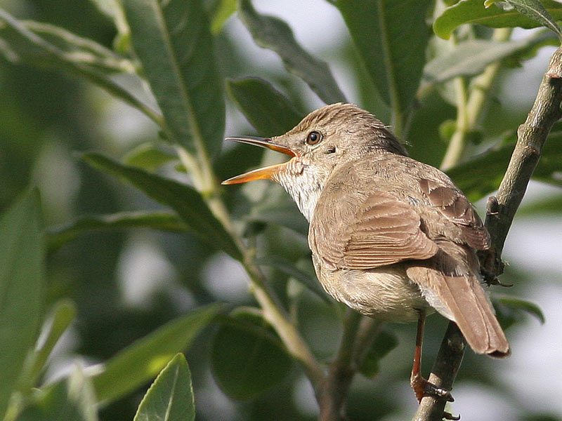 Buskrørsangeren sangpositur ses - med artens hippolais-tendens til at "skyde underlæben frem". Den lignede syngende mere en gulbug (Hippolais) end noget andet.