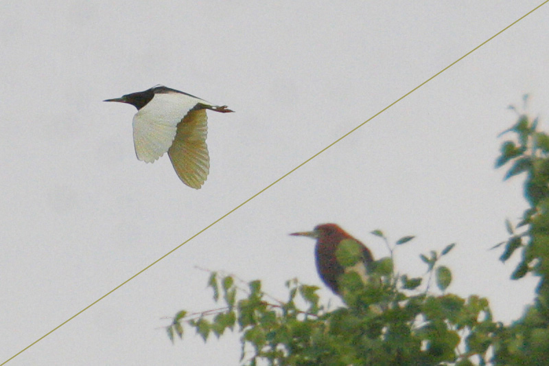 Beskrivelse: The bird was originally reported on July 18 as a Squacco Heron (Ardeola ralloides). The following morning the true identity was revealed. It was a Chinese Pond Heron (Ardeola bacchuc). The status of this individual is uncertain at present. The three previous European records have all been considered of captive origin. The bird was very timid and it was visible for fleeting moments only. The picture is a collage of 100% crops of two photographs.
