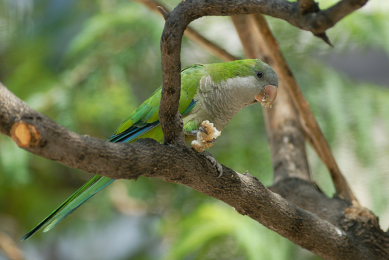 På Placa Tetuan flokkedes parakitterne om en ældre dame der fodrede duer - og munkeparakitter.
