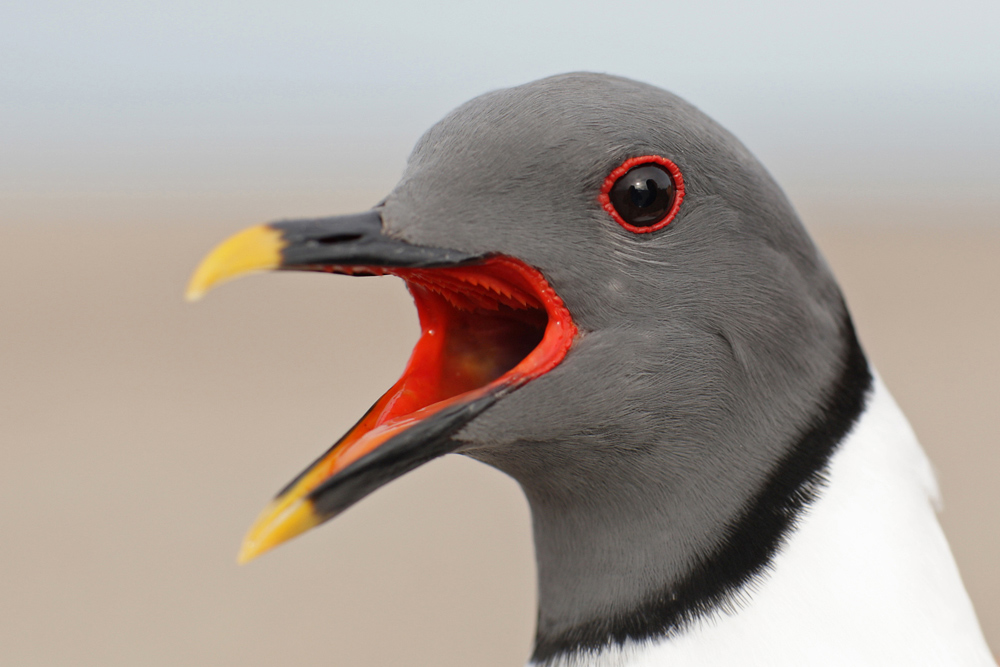 Beskrivelse: På afstand tror man at sabinemågen har en ensfarvet hætte, men tæt på ser man virkelig hvor flot den er....