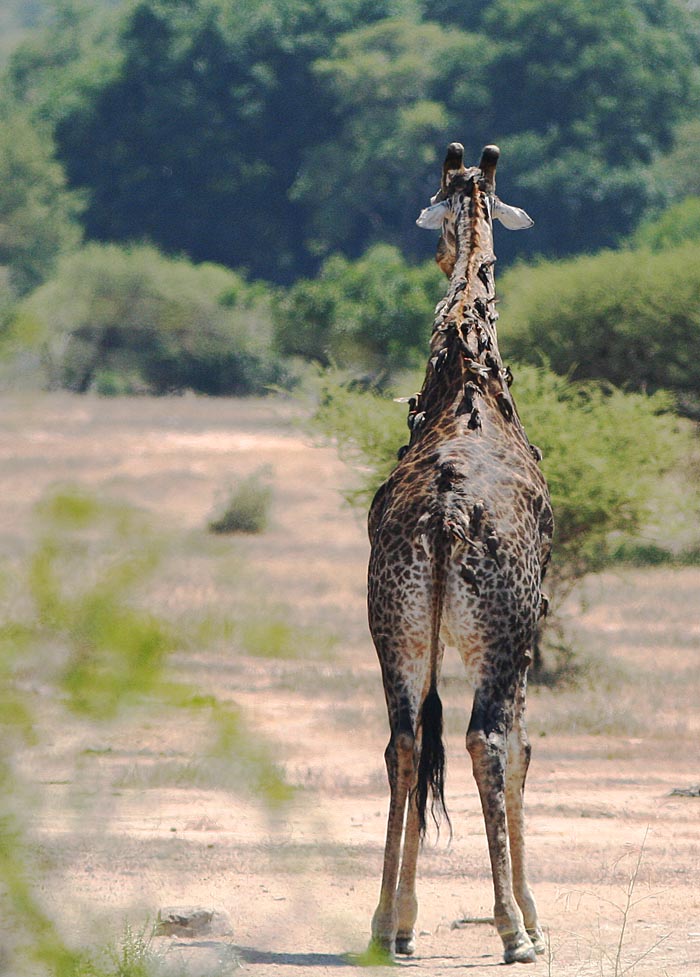 Titel: RED-BILLED OXPECKER PÅ GIRAF