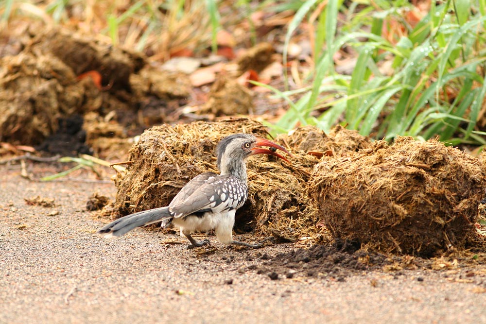 Beskrivelse: RED-BILLED HORNBILL ÆDER ELEFANT....