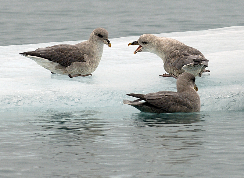 Beskrivelse: Fuglen på vandet er nok en af de mørkeste Mallemukker (bemærk dog lysere strube) jeg så på Svalbard - hvor den lyse fase var sjælden, men hvor der i øvrigt var betydelig variation.