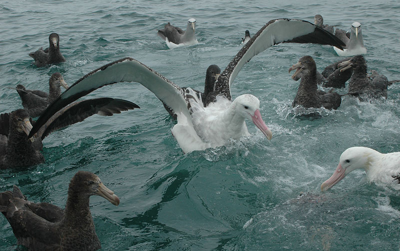 Beskrivelse: På billedet ses også Northern Giant Petrel (Macronectes halli), Salvins Albatross (Thalassarche salvini) og Cape Petrel (Daption capense).