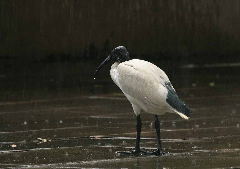 Beskrivelse: Denne ibis ser ikke ud til at nyde en usædvanlig våd australsk sommer !