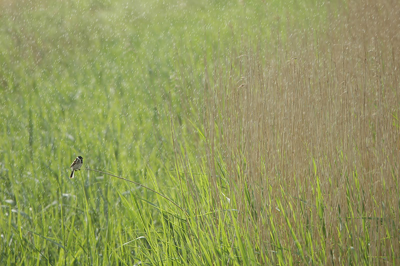 Et fint billede af den danske sommer. Lige som dit billede af Skægmejsen holder jeg af dette for den måde, Rørspurvens "væsen" kommer til udtryk i billedet. Det er godt, at der også kommer den slags billeder - ved siden af alle de flotte nærstudier.