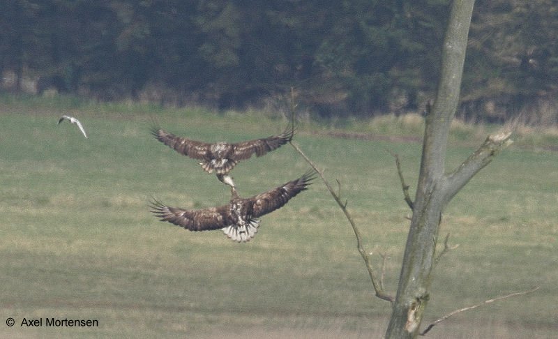 Men så fangede den unge havørn en fisk, som den gamle havørn åbenbart syntes, at den havde ret til at overtage.