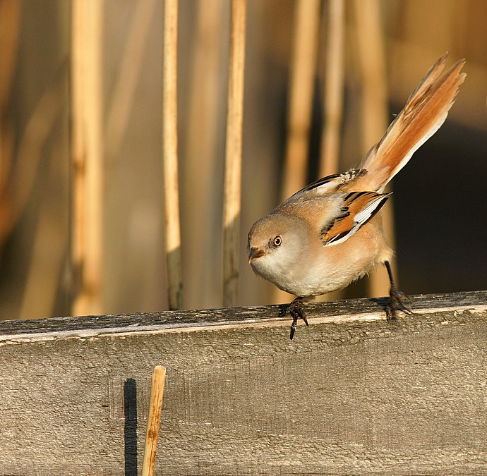 Beskrivelse: For det meste sidder skægmejserne bag en masse rør, men kortvarigt kommer de frem.