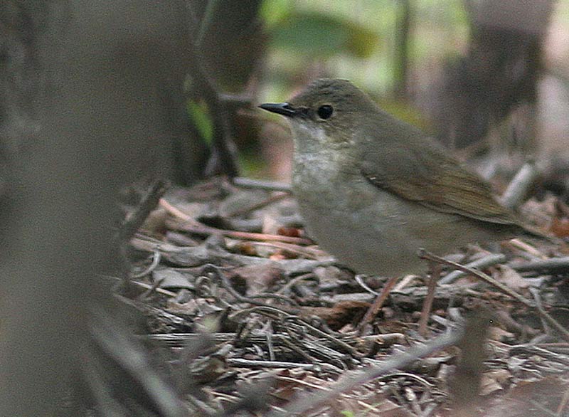 Beskrivelse: Mens hannen er et orgie i blåt, hvid og sort er blånattergalens hun et noget mere anonymt væsen. I forhold til andre smådrosler har den kortere hale og længere - lyse - ben, og kan faktisk i formen minde om en slank miniature-vandstær. Ellers er den ganske utegnet og anonym, dog med let afstikkende blå hale (formentlig kun svagt hos ungfugle), og forsvinder let i skovbunden, når den som en mini-drossel hopper omkring og søger føde. Det stirrende mørke blik og de lange lyse ben er da den met påfaldende karakter, hvilket kan være værd at have i tankerne hvis man forsøger at lede efter østasiatiske rariteter om efteråret herhjemme.