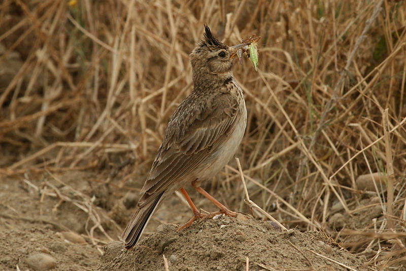 Beskrivelse: To see a Crested Lark here it is not so specific,but to see a Crested Lark with food in its bill it is something special.