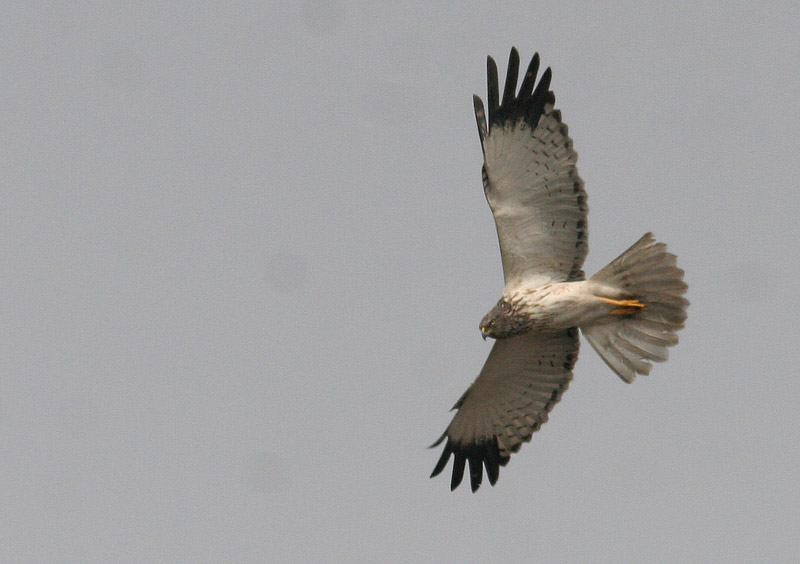 Beskrivelse: Eastern Marsh Harrier - Østlig Rørhøg - erstatter Rørhøg i Østasien. Den adult han har mørkegråt hoved, adskilt fra den hvide bug af mørke striber. Kombinationen af mørkt hoved og hvidlig bug er yderst sjælden hos Rørhøg (se foto fra 30.8 2006 fra Foteviken, men ikke ukendt. Rørhøgens hovedfarve er dog brunere med pletter fremfor striber i overgangen, og den mangler Østlig Rørhøgs smalle mørke bånd i håndsvingfjerene. Desuden har Østlig Rørhøg mørkere og koldere brun farve på overvingen, amt tydeligere lyse fjerrande, der giver et tydeligere skællet udseende.