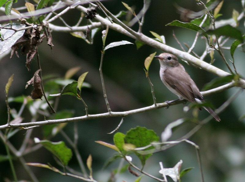Taiga Flycatcher is generally believed to show an all dark bill. However, at close range, it is often possible to see a very slight paler tinge to the extreme base of the lower mandible. This bird is however, extreme in showing an all pale base to the bill, as would be expected from Red-breasted. Note however the greyish tinge and the jet-black upper tail-coverts. the call was typical to Taiga: a short rattle, similar to one tone in the song of Crex crex!