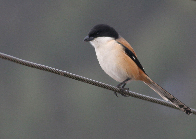 Beskrivelse: Langhalet Tornskade af formen tricolor. Disse sorthovede former med kraftigt rødbrun overside er almindelige i den østlige halvdel af Nepal; i centrale dele af Nepal nævnes overgangsformer og blandpar med den gråhovede form erythronouts, der er den form, der blev set i Jylland oktober 2007. På 5 rejser i Nepal har jeg dog endnu ikke truffet på overgangsformer. Erythronotus overtager i det vestlige Nepal, og jeg har set de to former side om side i f.eks. terai´en, hvor jeg endnu mangler at se fugle med blandingskarakterer. Der synes god grund til at splitte Langhalet Tornskade i to arter, hvoraf tricolor - den sorthovede - er den ene. An example of the distinct Blach-headed, rusty-backed form of Long-tailed Shrike, which is said to hybridize with the pale-headed form erythronotus in Central Nepal. The hibridization seems however to be rare; on 5 journeys to Nepal, I have only come over typical forms of the two, with tricolor solely occuring in the east. To my eyes, tricolor looks like a good candidate - together with other black-headed ssp. - for a split.