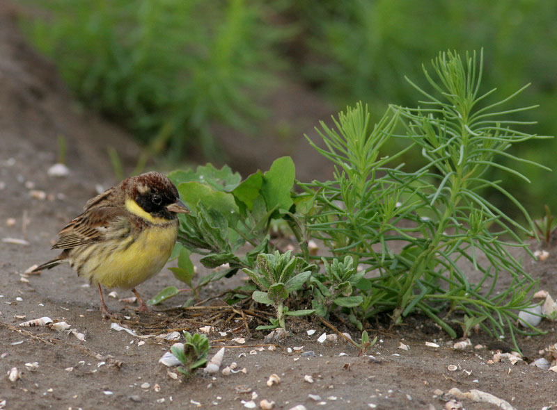 Beskrivelse: 2k han Gulbrystet værling -list mattere og lysere gul end den adulte han, og kun med et smalt rustbrunt brystbånd.