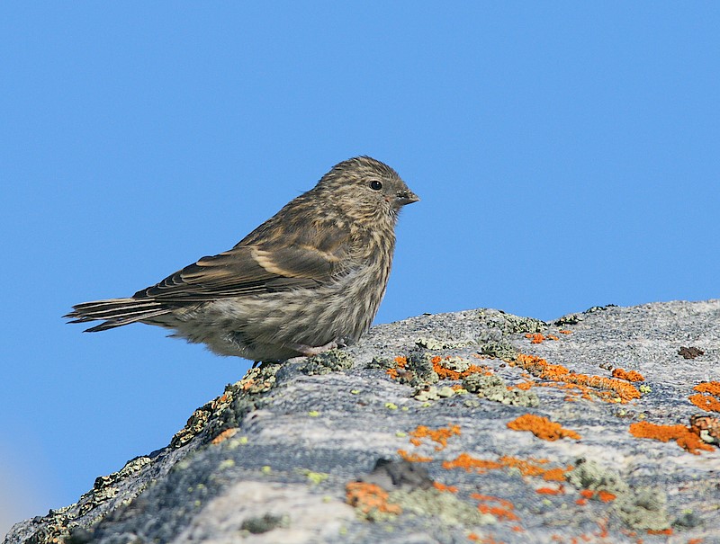 Beskrivelse: Mit seneste upload af denne fugl var meget anderledes - rød hætte og meget lys underside. Hvad er så dette? Den var helt uden rødt. Mit gæt er en ungfugl, men jeg vil gerne "tilrettevises". Den hoppede rundt på stenene lige ved indlandsisen.
