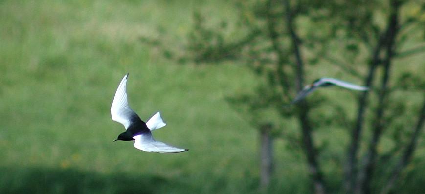 Beskrivelse: 19/5 2007 fouragerede 3 adulte hvidvingede terner hele eftermiddagen omkring kanalen nord for fugletårnet ved Horsens Nørrestrand. Der var også enkelte havterner til stede.