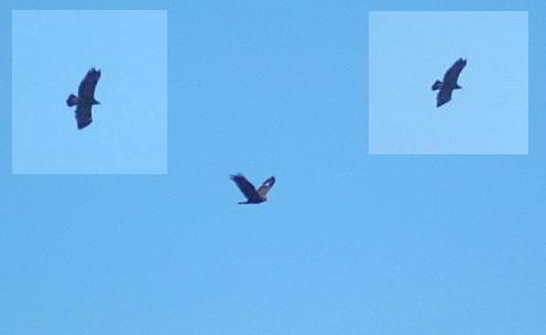 Beskrivelse: Denne Store Skrigeørn sås på trækforsøg kl. 1115 - 1122. Den kom ud i en skrue på mindst 150 Musvåger på en afstand af mindst 1 km i godt lys. Det drejer sig sandsynligvis om den samme fugl, som sås i Skagen 25 - 30/4 2008. Der havde i dagene op til denne obs "huseret" en Stor Skrigeørn på Nordøstdjursland, men denne fugl er altså en anden. Iøvrigt bedømmes dens alder til 3k.