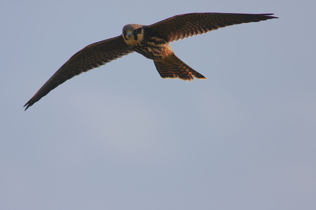 Beskrivelse: Med til historien om lærkefalkene hører også, at de var meget fotogene. Helge og jeg fandt en lille bakke overfor pumpestationen, hvor lys og højde passede med gentagne forbiflyvninger af de 3 lærkefalke. Og trods det og trods mange hundreder skud fra mit kamera - ja så var der 2-3 billeder, der kunne bruges.