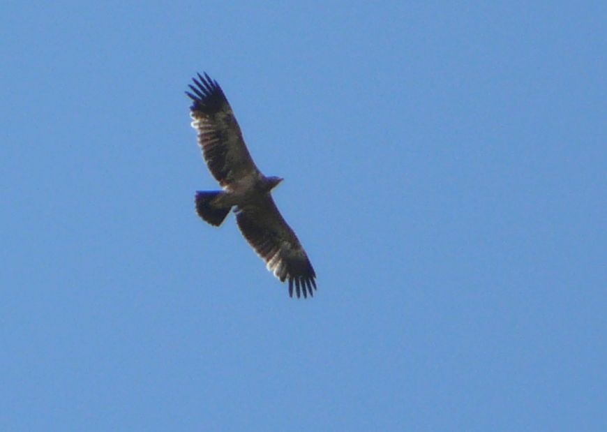 Jeg har også spekuleret på, om kejserørn kunne være på tale, men, brystet er ikke stribet, og den markerede 'jernbane' gør at jeg også hælder til steppeørn.