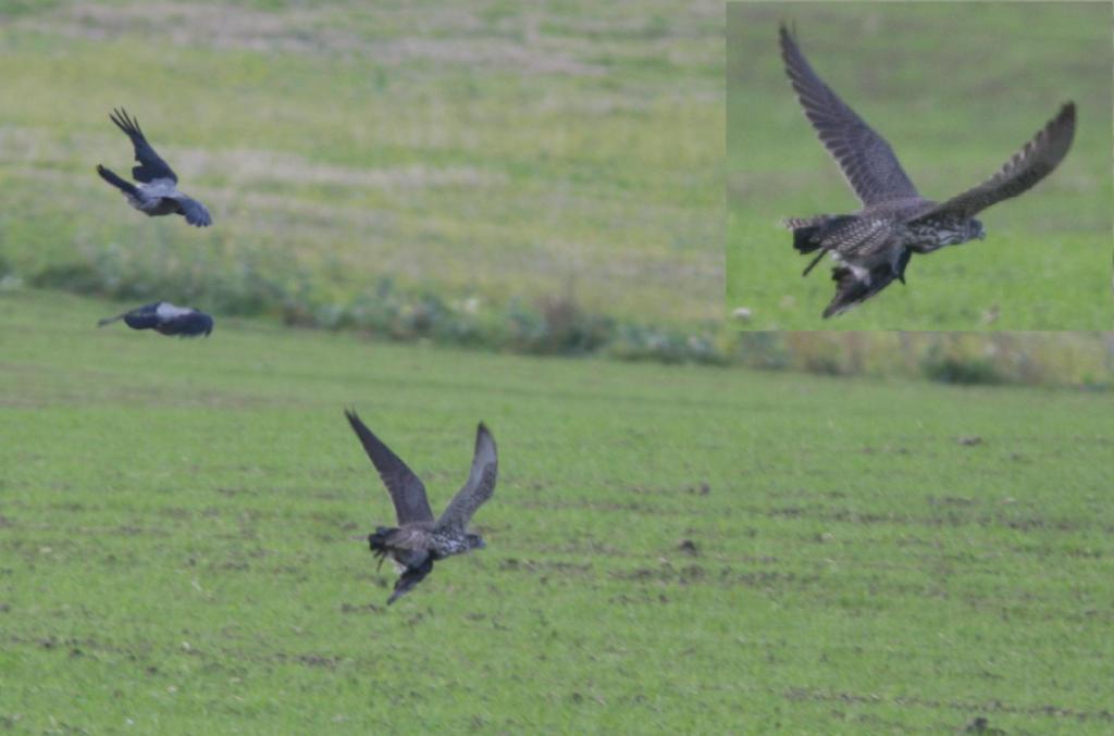 Der er mange helt utroligt flotte billeder på Netfugl som jeg glæder mig meget over. Selv har jeg holdt mig væk da jeg tvivler på at mine fotos er gode nok. Jeg er derfor glad for at vide at der er nogen der værdsætter mine billeder af jagtfalken. Det der kunne ligne en strop er kragens yderste venstre halefjer der er knækket.