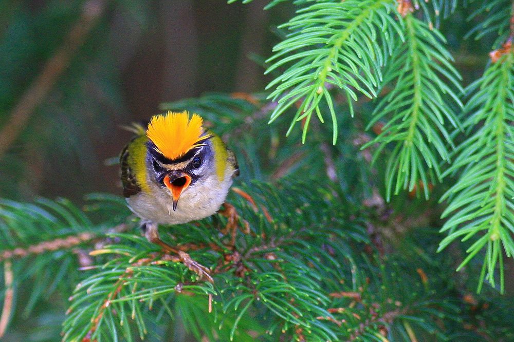 Rødtoppet Fuglekonge (Regulus ignicapilla) Common Firecrest -