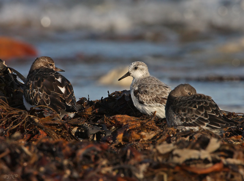Beskrivelse: Stenvender, Sandløber og Sortgrå Ryle hviler ud efter en lang tur over Kattegat.