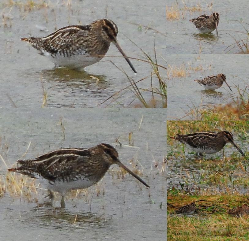 The bird was present to day at the same spot. It was flushed along with 3 common snipes. They circled around my head a few times and there was a good opertunity to compare and contrast them. This one reminded me of jack snipe when flushed. It was very contrasting black/white. The underwing was uniformely dark with a a slight contrast between underving coverts and primaries/secondaries. There was no visible white edge on back of the wing.
