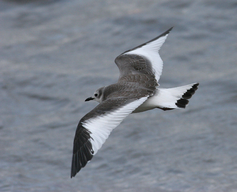 Beskrivelse: Sabinemåge er ganske let at kende. De fleste fotos viser fuglen i solskin, hvor ungfuglenes gråbrune partier bliver mørkt grålige, men i overskyet virker de brune - og i det sene efterårs ringe lys endog meget mørkt brune. De, der var med på Felttræk 2002´s Sabinemåge ved svanene vil vide, hvad der menes.