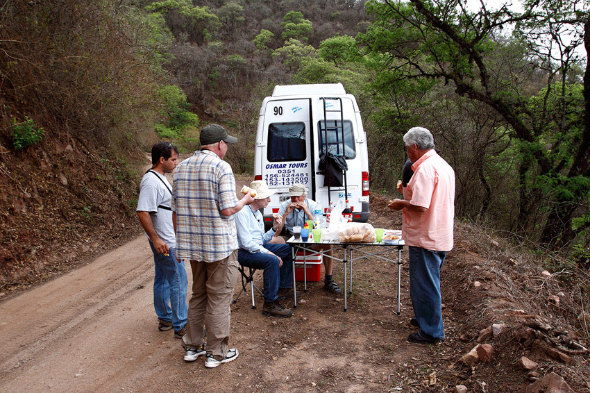 Beskrivelse: Tau Rasmussen, Hans Meltofte, Nils-Erik norsker, Guillermo Rivera, Osmar (the driver)