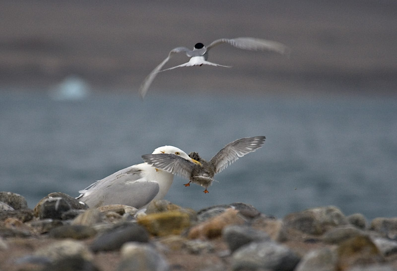 Titel: Gråmåge med havterneunge
