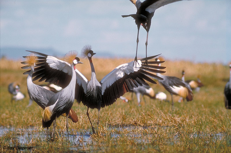 Beskrivelse: Mweas rismarker s.f. Embu har et rigt fugleliv, således kan krontranernes dans